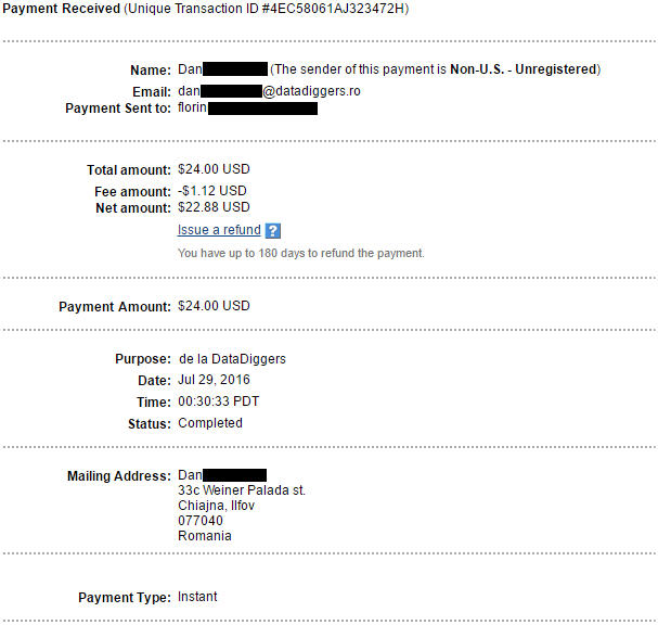 Deocamdata, singura metoda de a intra in posesia banilor pe care i-ai castigat este prin transfer in contul tau de PayPal. In curand, vor fi introduse si alte metode precum: transfer in contul tau bancar personal, numerar prin mandat postal sau transformarea banilor in vouchere online de la eMAG.PayPal este un sistem de transfer al banilor care permite utilizatorilor sai sa transfere bani direct din PayPal in conturile lor bancare personale. Este obligatoriu ca adresa de email pe care o folosesti in panelul DataDiggers sa fie aceeasi cu adresa de email din PayPal, pentru ca aceasta metoda sa functioneze. Daca ai deja un cont de PayPal la care folosesti o alta adresa de email, poti adauga adresa de email folosita la DataDiggers in contul de PayPal. Gasesti aceasta optiune in sectiunea "Profile settings" aflata in contul tau de PayPal.