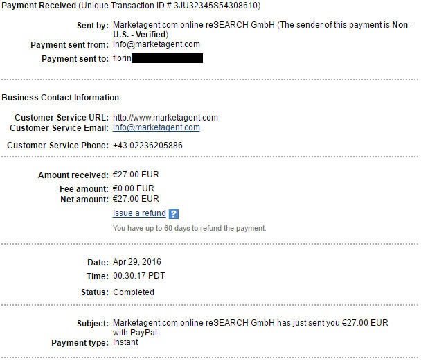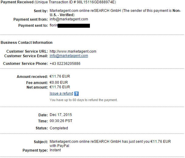 Plata minima este de 10 euro (1000 de puncte) si se face prin Paypal,Skrill sau direct in contul tau bancar.In plus, Marketagent organizeaza concursuri lunare cu premii surpriza consistente.